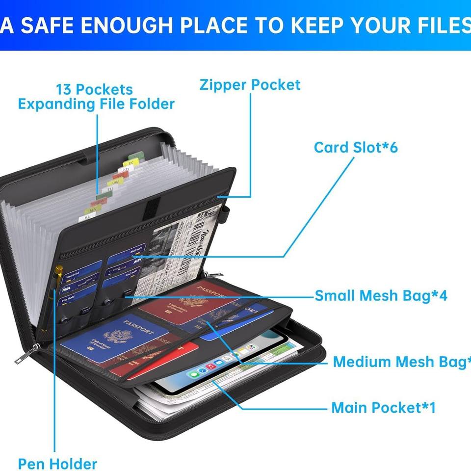 13 poches fermeture à glissière ignifuge A4 extensible dossier de fichiers avec poignée PP matériel affaires coffre-fort stockage accordéon organisateur