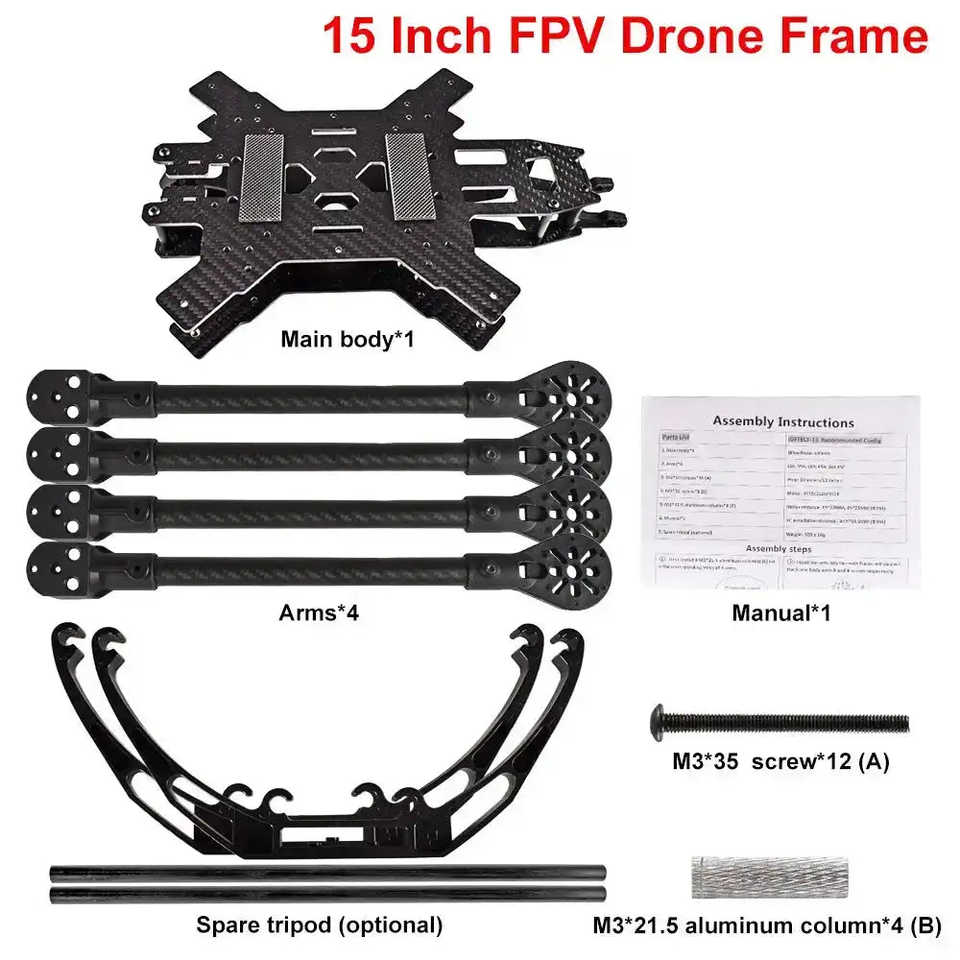 Machine de croisement en fibre de carbone avec cadre de drones de course de 13 pouces/15 pouces avec FPV pour les amateurs de drones