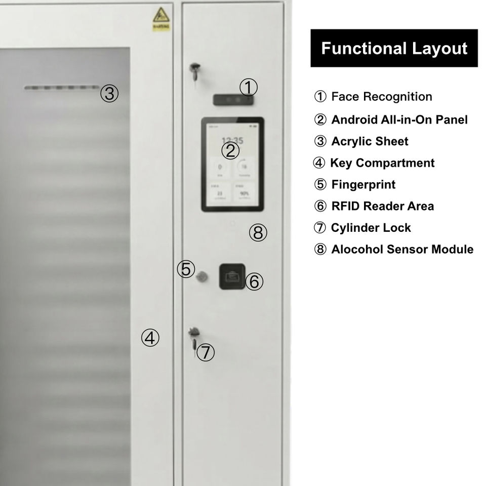 Armoire à clés intelligente 130-250 emplacements avec contrôle RFID, coffre-fort, système de gestion électronique des clés, support au sol, NFC, empreinte digitale, reconnaissance faciale
