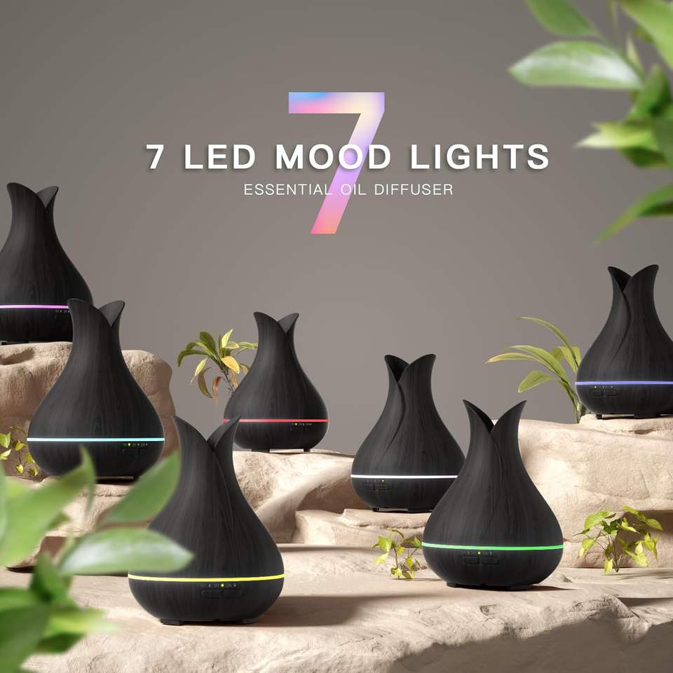 Diffuseur d'arômes 130ML avec lumières 7LED Appareils ménagers Diffuseur d'aromathérapie à grain de bois Humidificateur de brume