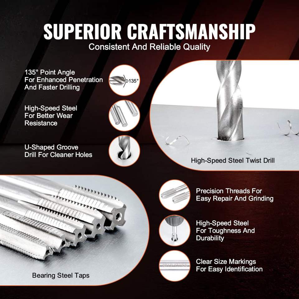 131 PCS SAE Tool Helicoil Kit de réparation de filetage 1/4 5/16 3/8 7/16 1/2 in UNC pour inserts filetés