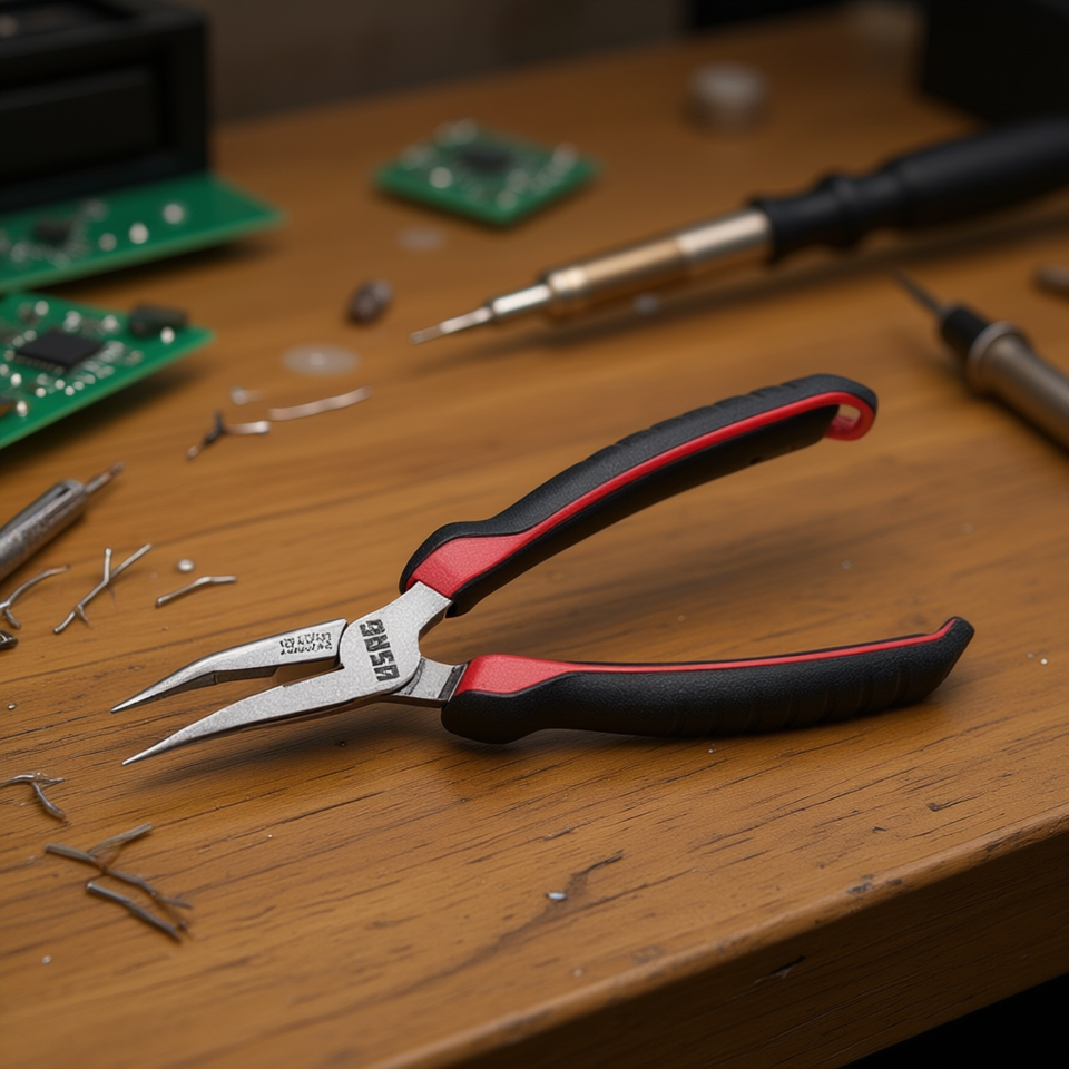 Pince à bec long 133 AXP avec manche rouge et noir pour travaux de précision