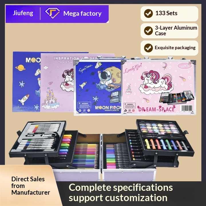 Ensemble d'outils de dessin pour enfants de 133 pièces, coffret cadeau spécial, ensemble complet d'art, crayons d'eau, crayons de couleur, crayons à dessin, graffiti