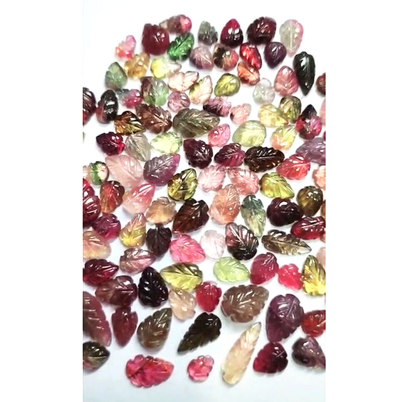 Product name:Natural Multi tourmaline 6mm to 16mm free size gemstone carving leaf