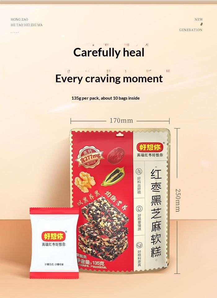 Nom du produit:Gâteau moelleux aux dattes rouges et au sésame noir.
