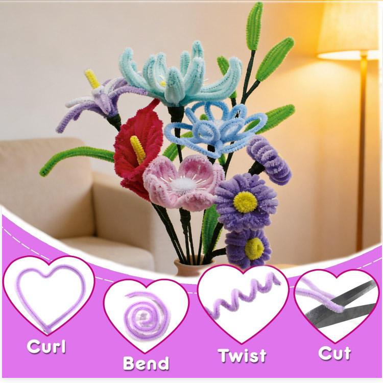 Kit de 135 Nettoyants pour Tuyaux (Pipe Cleaners) pour l'Artisanat - Kit de Fabrication de Fleurs en Chenille, Fil Épais et Doux avec Accessoires pour Arts & Artisanat, Décoration Festive