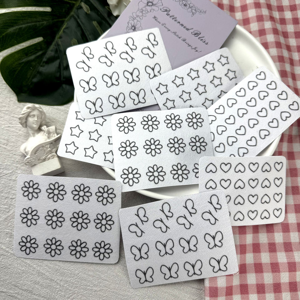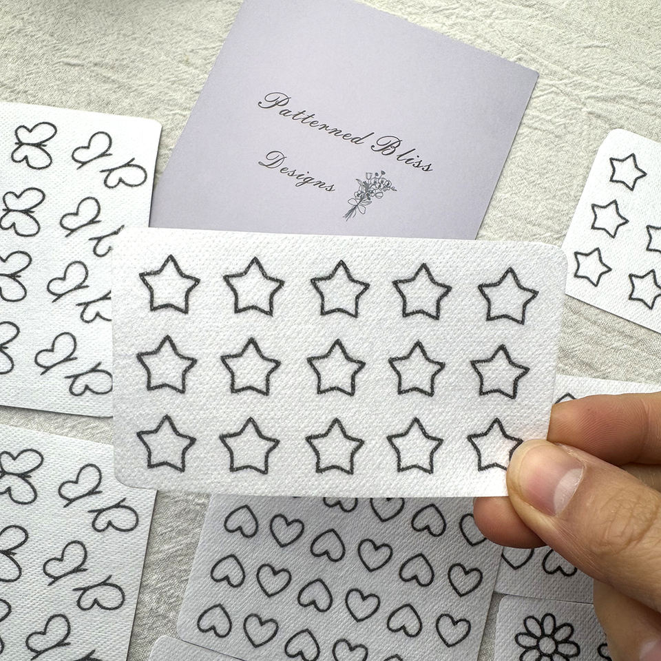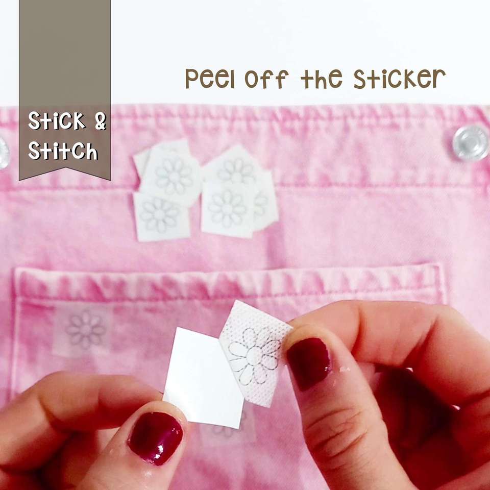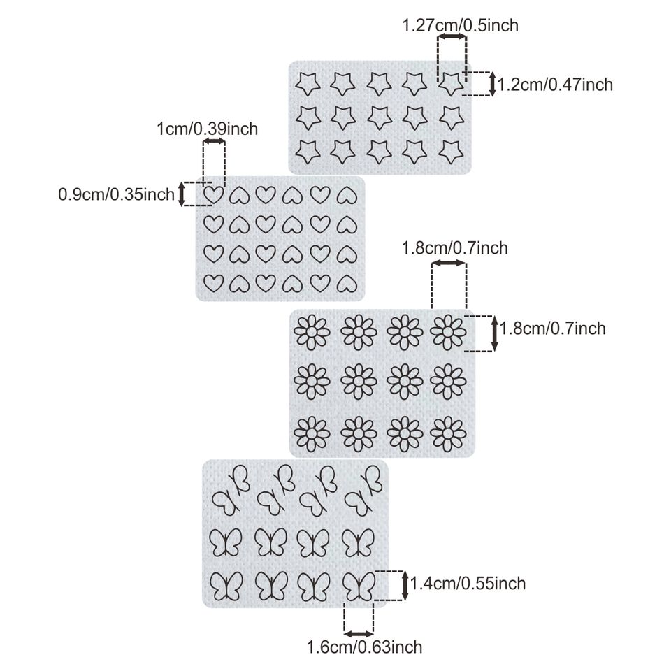 138 autocollants brodés : cœurs, étoiles, papillons, marguerites - Papier soluble dans l'eau, effaçable à l'eau