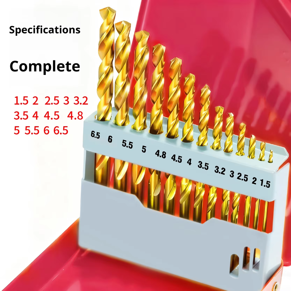 Jeu de 13 forets hélicoïdaux 1,5-6,5 mm en acier rapide métrique à tige droite HSS pour métal, bois, plastique