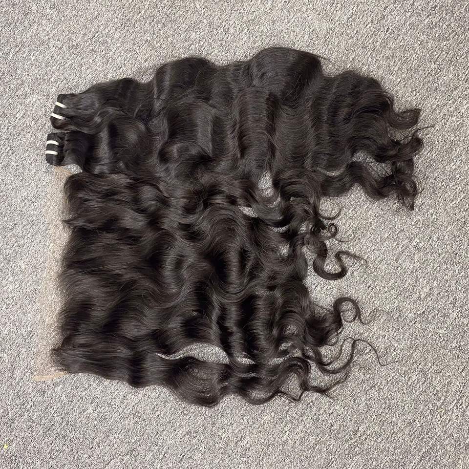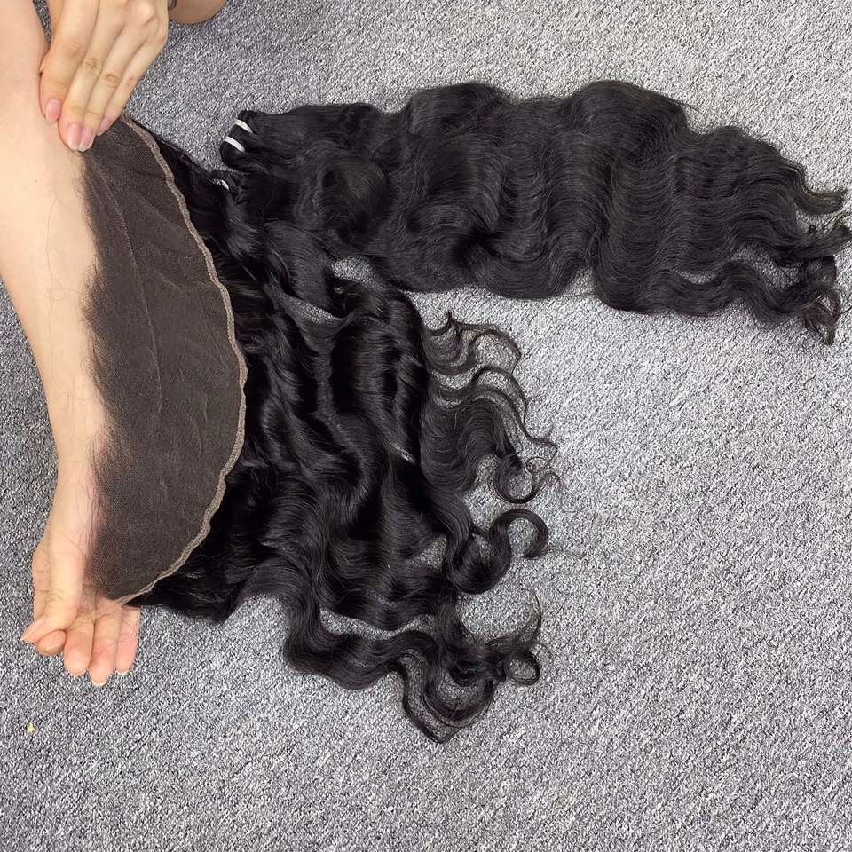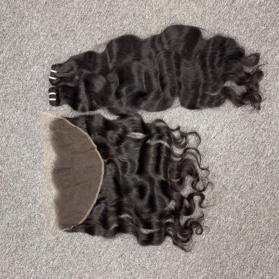 13x6 Full Set for Lace Frontal Waving Raw Natural Wave HD Lace Bundles Double Weft Virgin Hair Extensions Machine Weaving Type