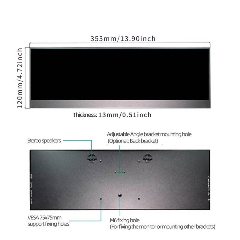 Écran tactile IPS portable 4K de 14.1 pouces 1920x550 Affichage à barre étendue pour ordinateur portable