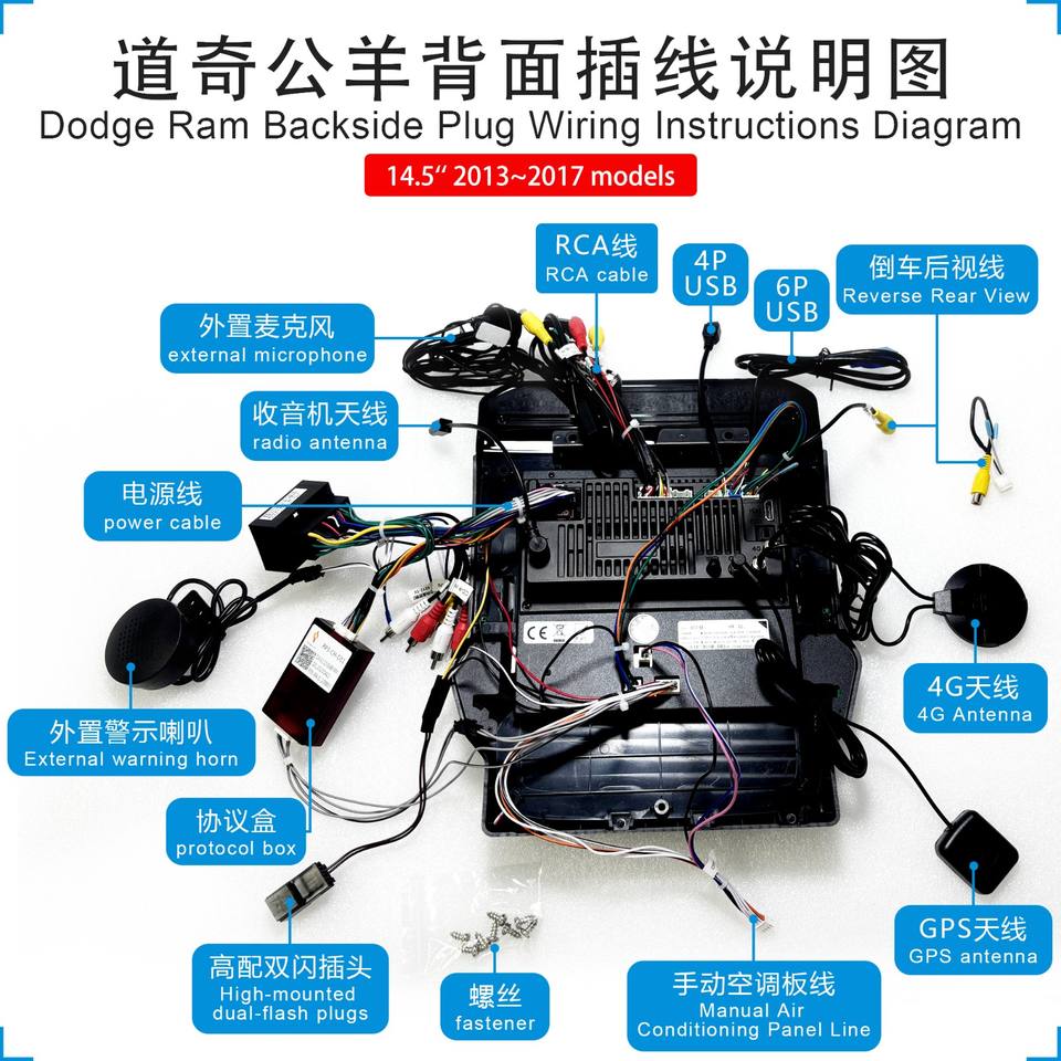 GPS Android CarPlay 14,5 Pouces avec DSP et Écran IPS, Transmetteur FM, Garantie 1 An pour Dodge Ram 2013-2018