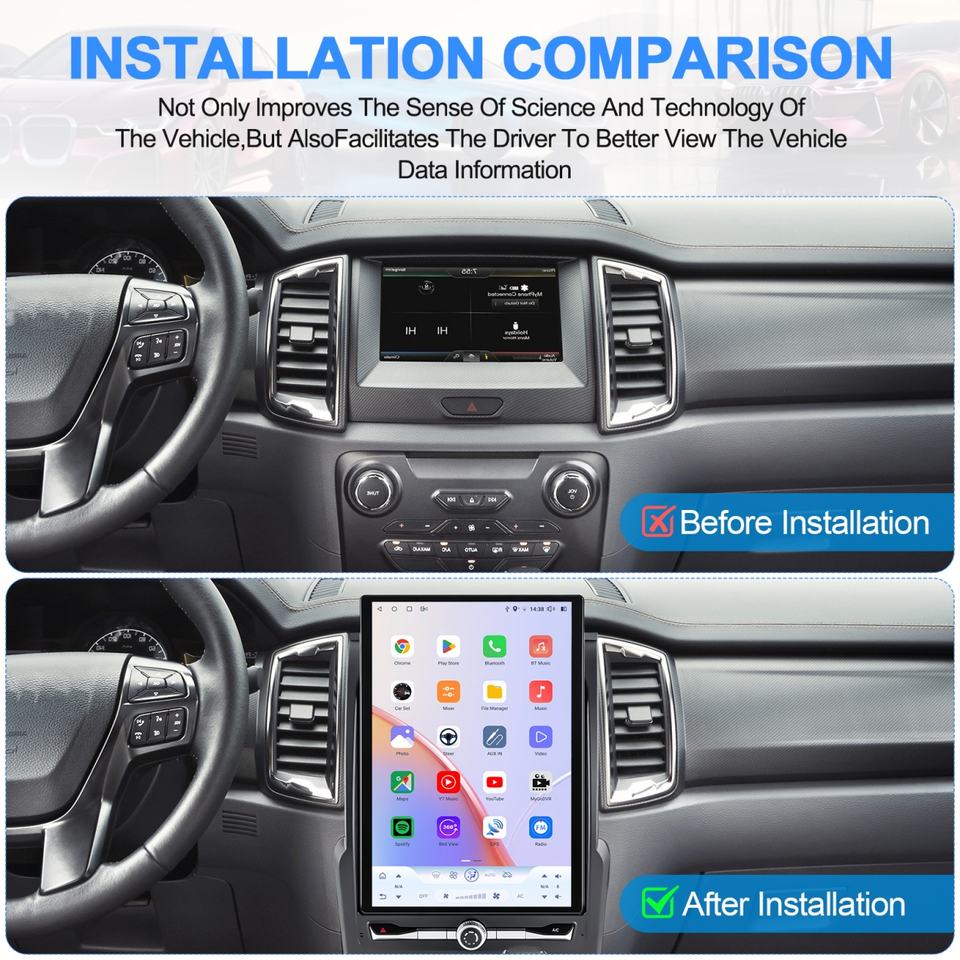 Autoradio Android avec écran vertical de 14,5 pouces pour Ford Ranger 2016-2020, mise à niveau Carplay