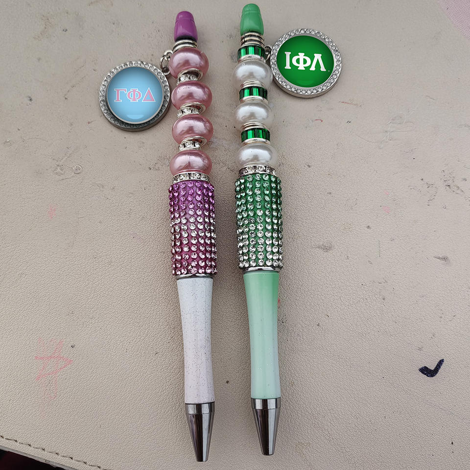 14.5cm de longueur perle stylo à bille avec Gamma Phi Delta Crest Logo Iota Phi Lambda gros bricolage perles caractère pour la fabrication de stylos
