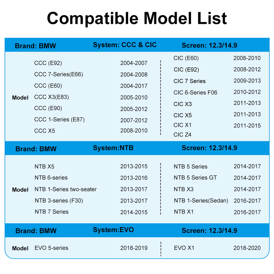 Numéro de Type:for BMW NBT CIC EVO CCC