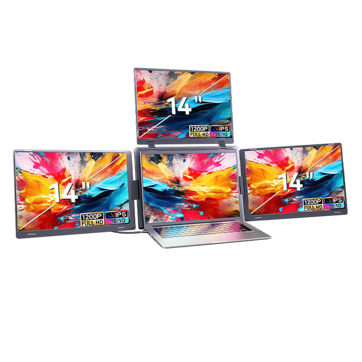 Moniteur portable quadruple 14 pouces 16:10, extension d'affichage 4 écrans, IPS Type C, haute luminosité pour Mac Windows Business Trading USB C