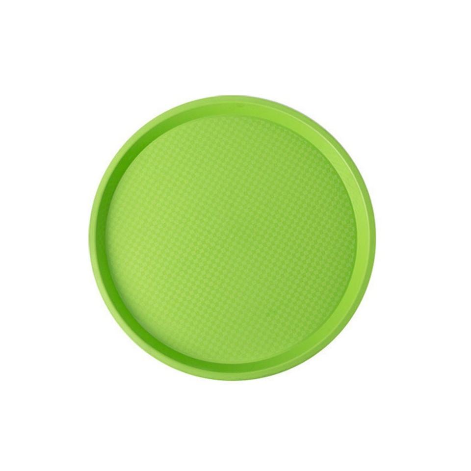 14 Inch Black Round Restaurant Serving Tray, 35cm Plastic Non Slip Surface Food Meals Server Tray with Raised Edges for Home