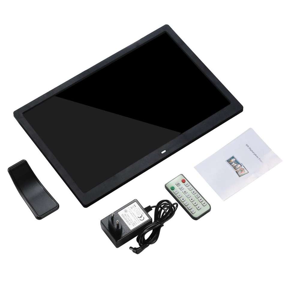 Cadre photo numérique Full HD de 14 pouces, écran haute résolution 1280x800, prend en charge la vidéo 720p et l'affichage des photos avec musique de fond