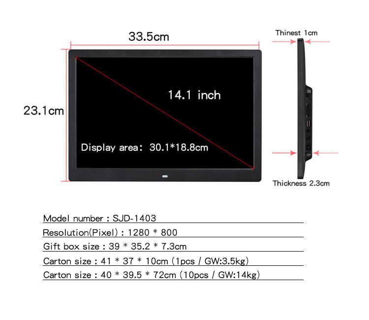 14 Inch Digital Photo Frame will be packed by standard carton.