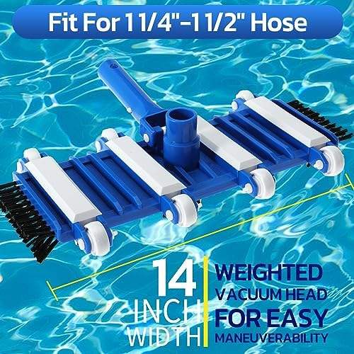 Tête d'aspirateur de piscine en plastique écologique robuste de 14 pouces, brosses latérales inférieures, conception flexible lestée, poignée en aluminium, lithium