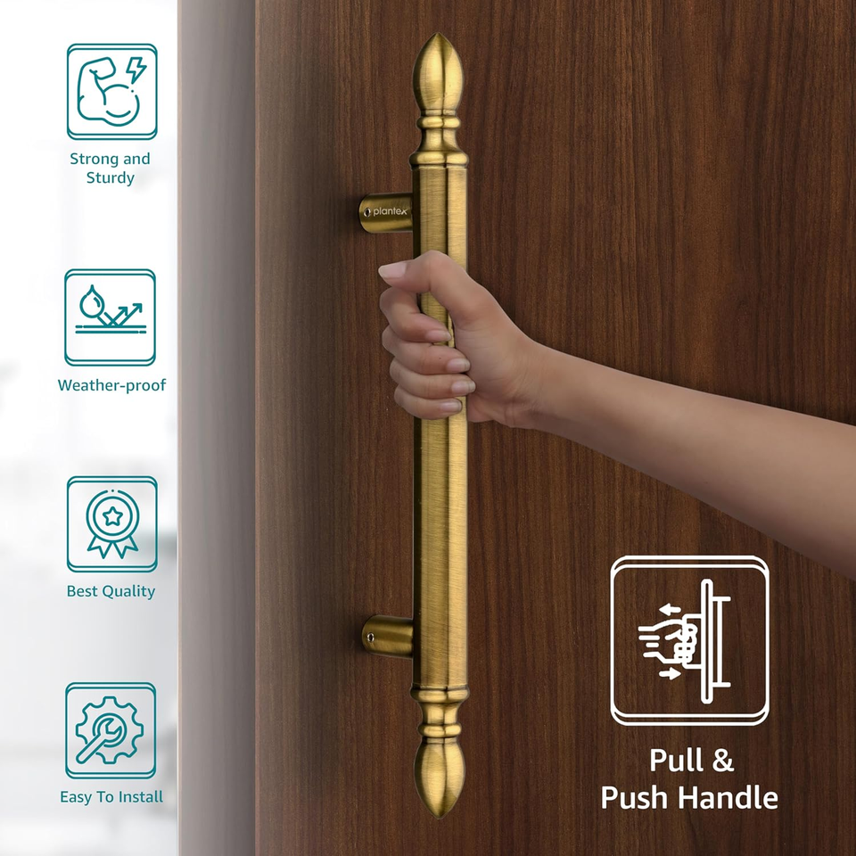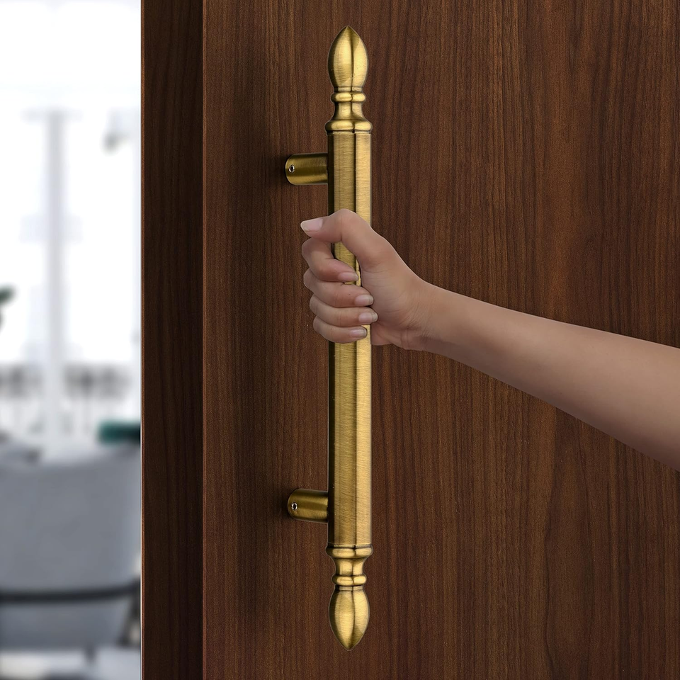 Poignée de porte principale de 14 pouces, finition laiton antique, poignée de porte à tirer et à pousser, alliage de zinc, durable, décoration de porte, garantie de 3 ans, lot de 1