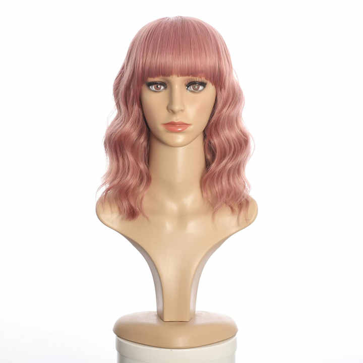 Perruque synthétique courte et ondulée de 14 pouces pour femmes avec frange, cheveux doux et résistants à la chaleur, perruque bouclée de style Bob à l'aspect naturel