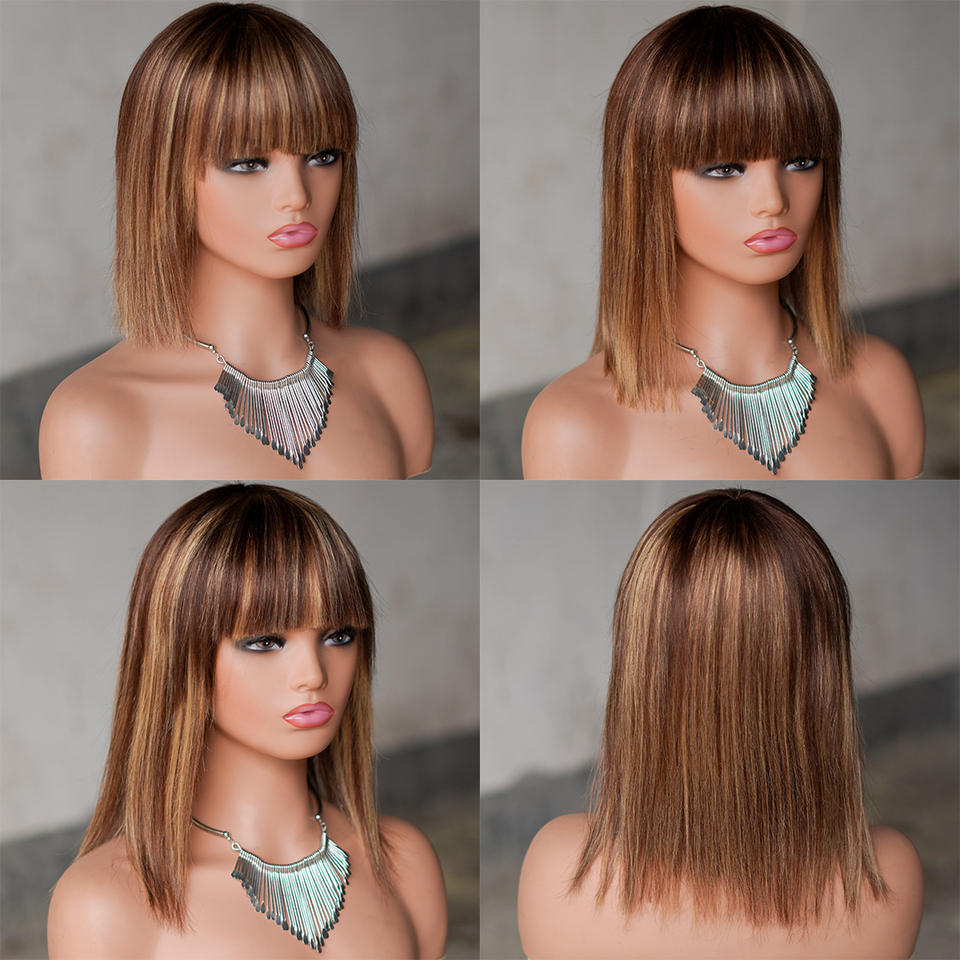 14 pouces court bob perruques coiffure droite transparent avant de lacet perruques ombre brun blonde perruques cheveux humains avant de lacet avec une frange