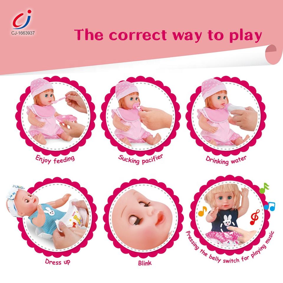 Poupée de 14 pouces avec fonction de lecture d'eau potable, ensemble de jeu pour nouveau-né avec accessoires