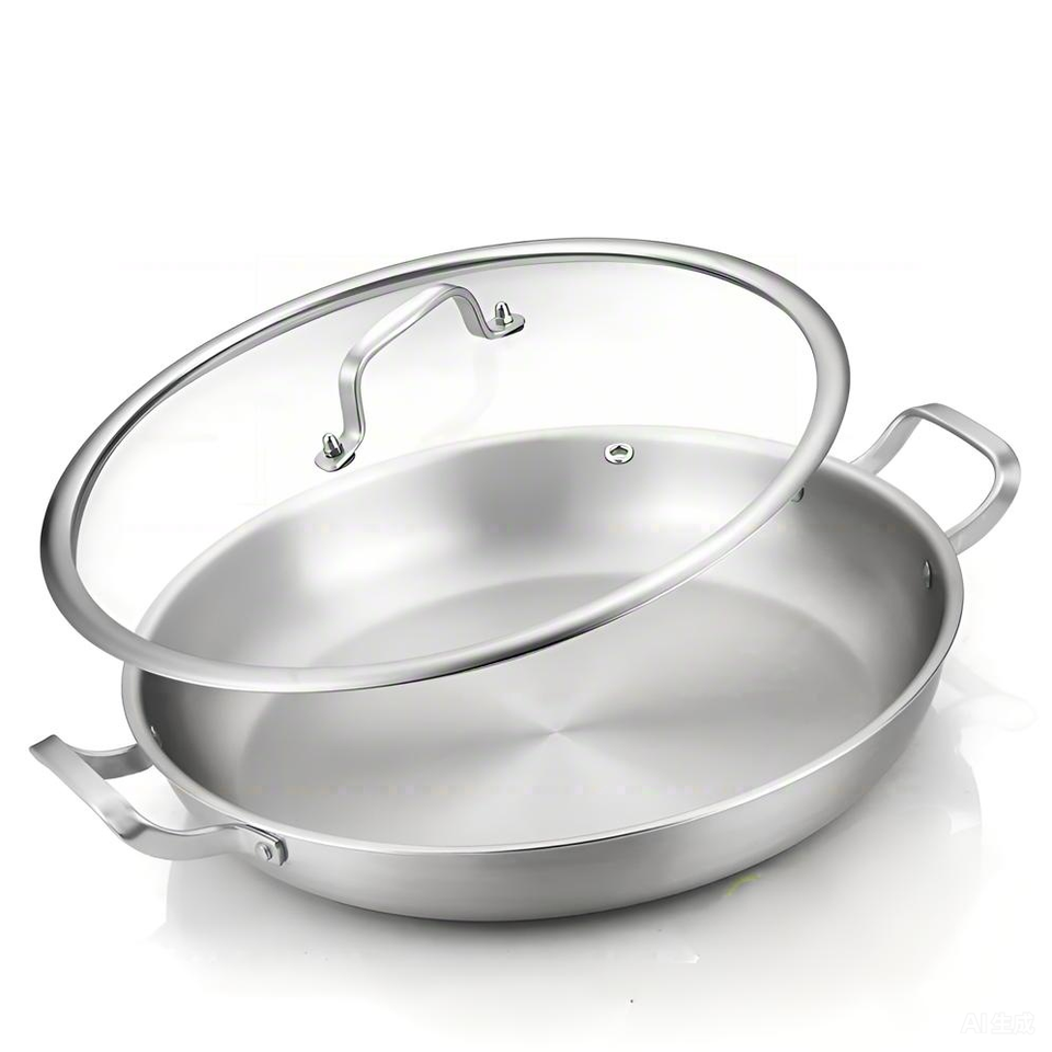 Poêle à paella en acier inoxydable de 14 pouces avec couvercle, grande poêle pour tous les types de cuisinières, Panelas Papila