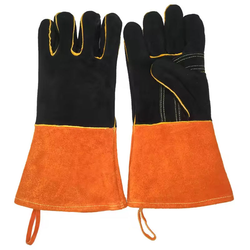 Gants de soudage résistants à la chaleur en cuir de vachette avec doublure en polaire renforcée sur la paume, 14 pouces, imperméables, antidérapants, gants de sécurité