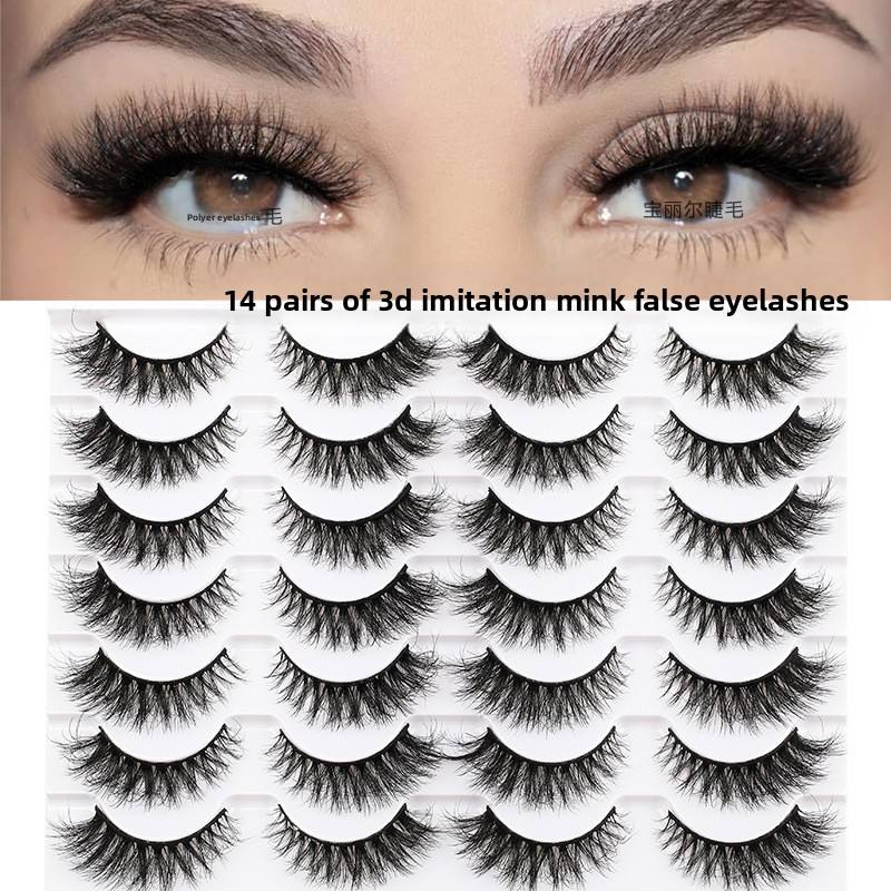 14 paires de faux cils faits à la main en faux vison, style européen et américain, volume intense, épais et bouclés, pour un look désordonné et dense SK