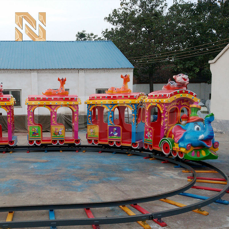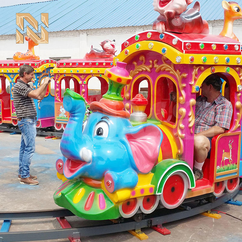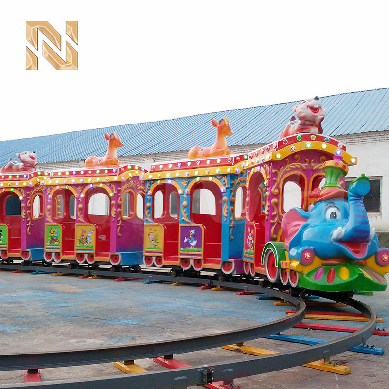 Train électrique sur rail à thème Éléphant pour 14 personnes, 220V 2.2KW, en fibre de verre et acier, pour parc d'attractions pour enfants, modèle Nova LR140, avec piste de 40m