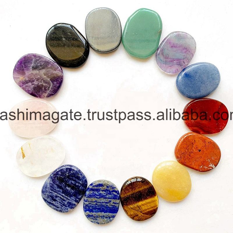 14-Piece Chakra Stones Set Natural Flat Back Crystals for Spiritual Healing & Meditation Gemstone Figurines Feng Shui Home Decor