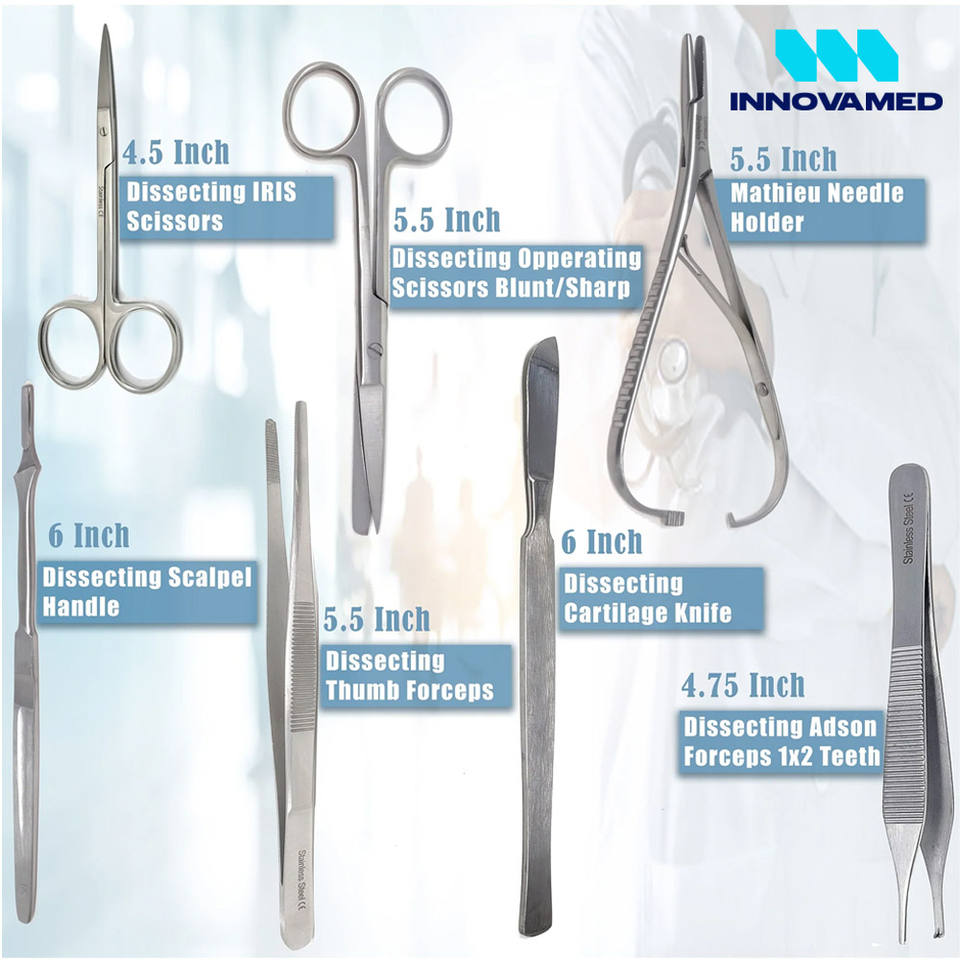 Kit de dissection de laboratoire complet réutilisable de haute qualité, 14 pièces, instruments chirurgicaux en acier inoxydable, étui de transport, Innovamed-for