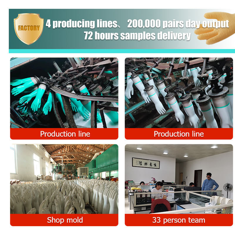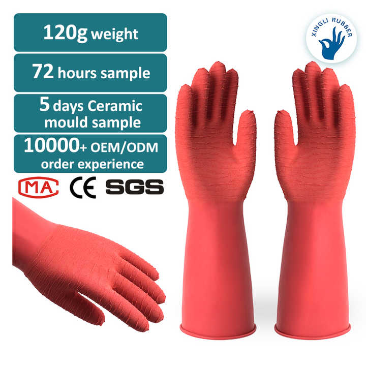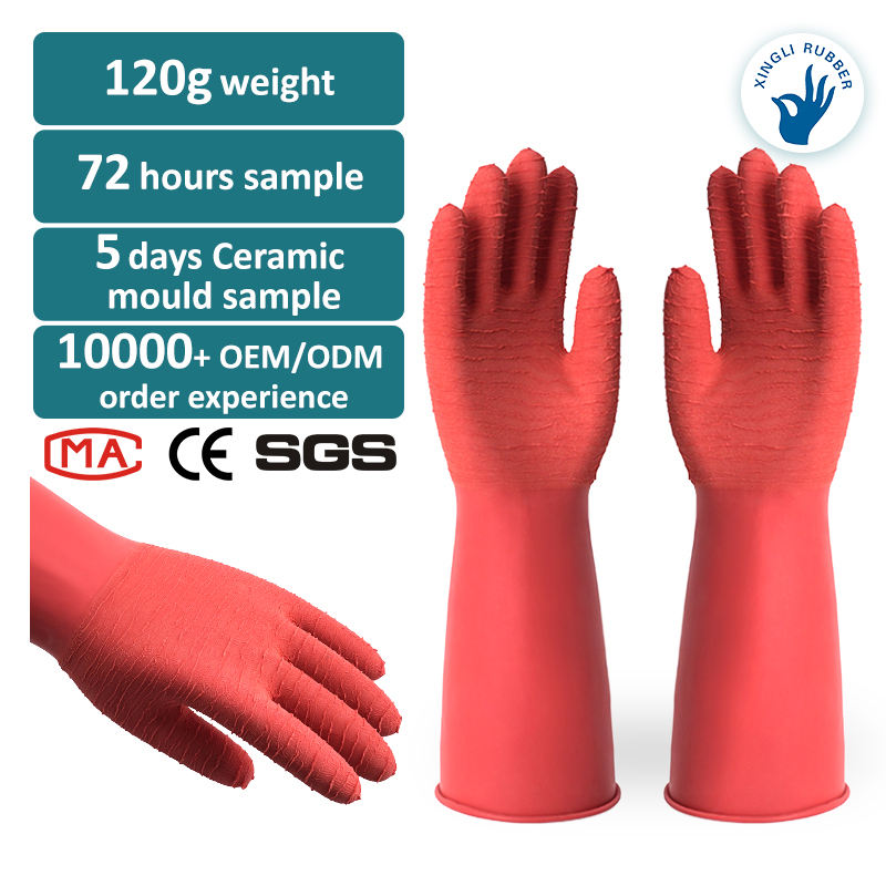 Gants en latex rouge pur de qualité alimentaire de 14 pouces avec fonction antidérapante et manche rugueux pour les industries de la pêche et de la mise en conserve