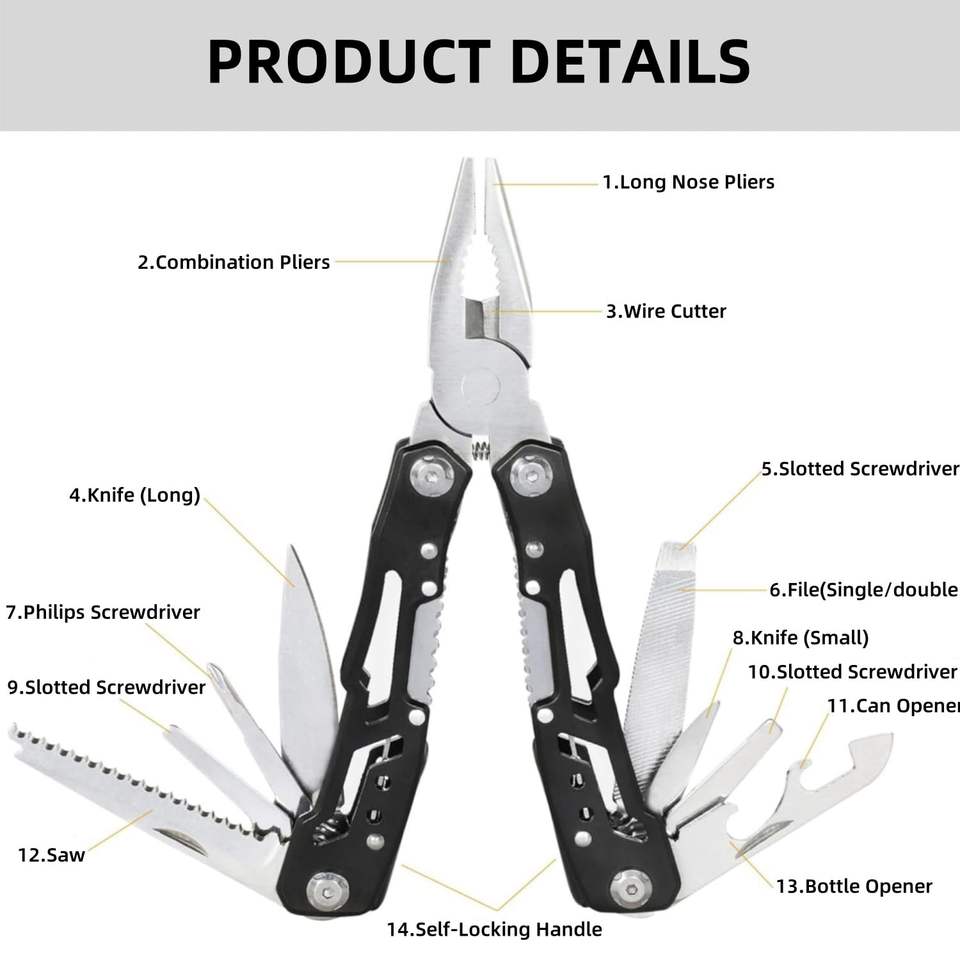 Pince à couteau de poche multi-outils pliable 14 en 1 pour Camping survie randonnée en plein air tactique chasse sauvetage pince polyvalente