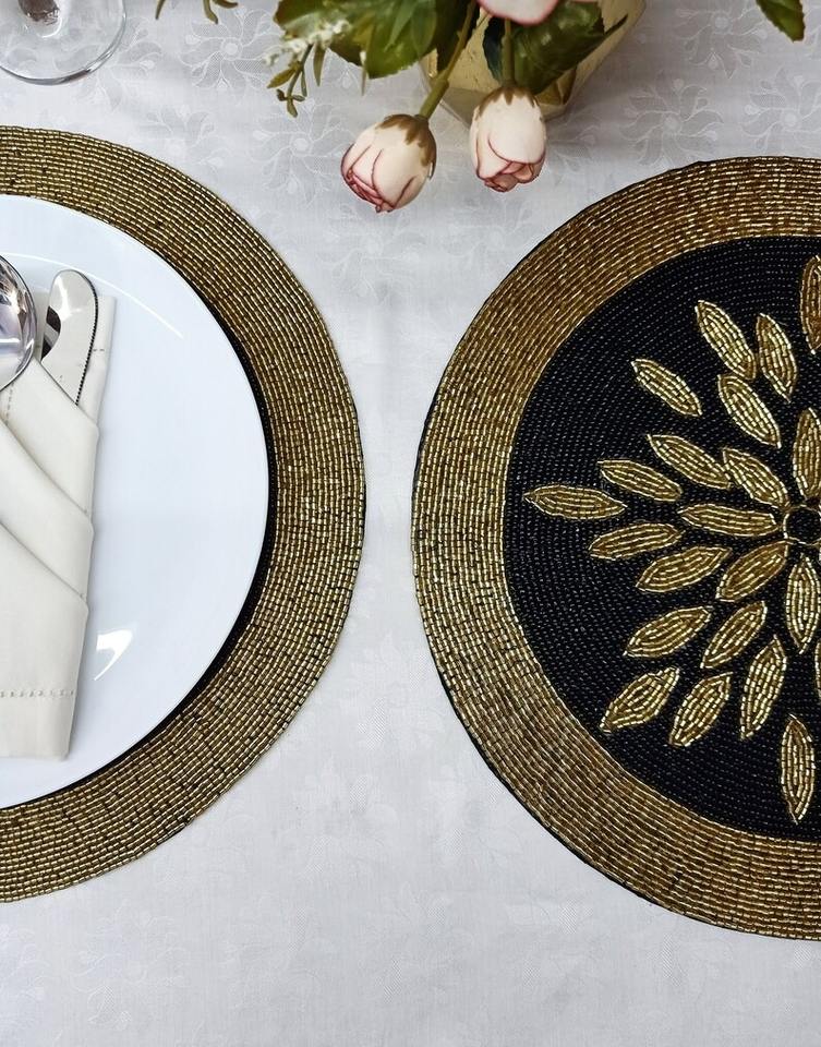 14 inch Dia Beaded Placemats Round for Gathering Occasional Decoration Farmhouse Handcrafted Beaded Placemats for Dining Table