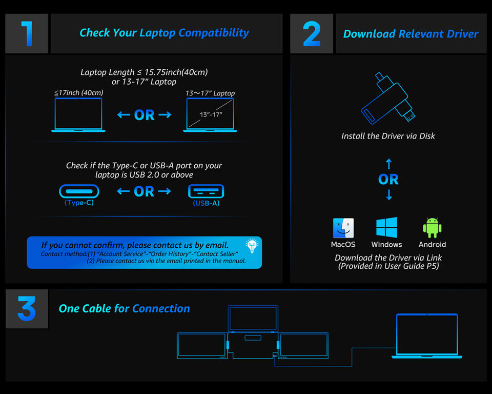 Triple écran portable Full HD de 14 pouces adapté aux ordinateurs portables, IPS ultra-fin, compatible avec Mac et Windows