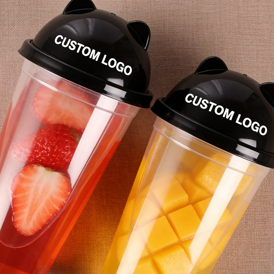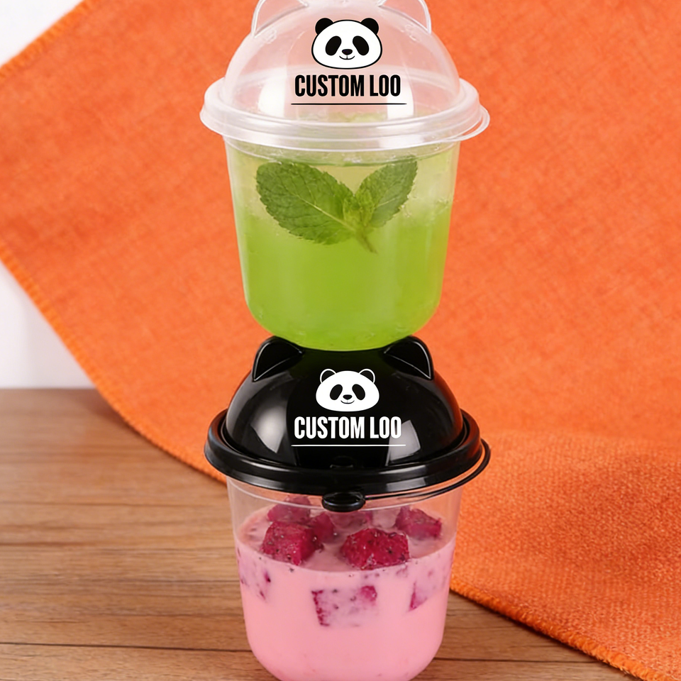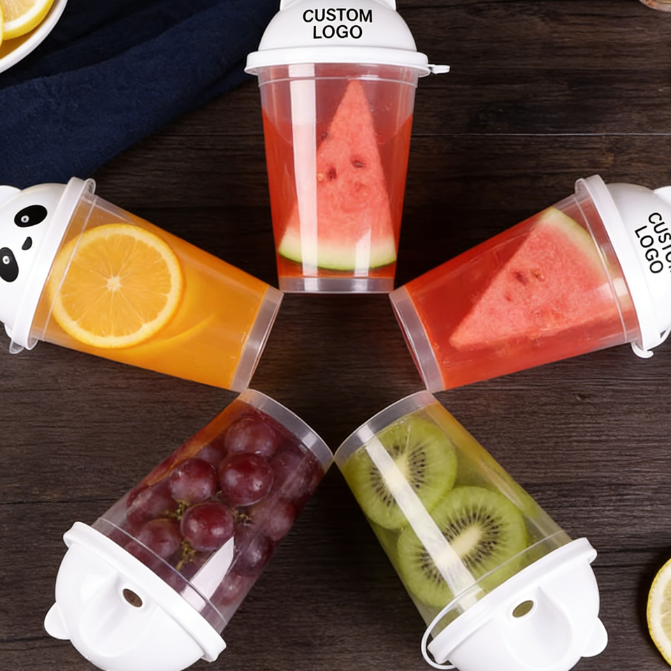 Gobelets jetables en PET à paroi simple de 14 oz, motif ours, diamètre 90 mm, recyclables pour fruits et café