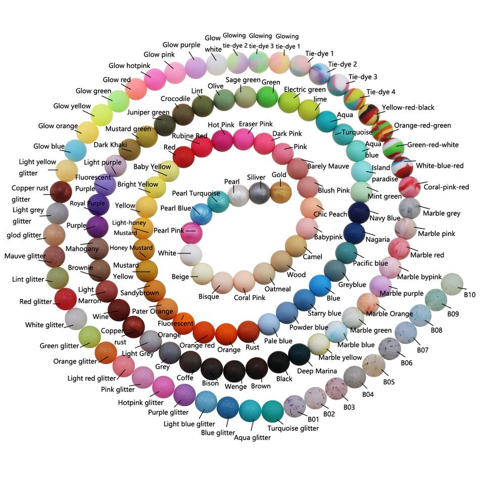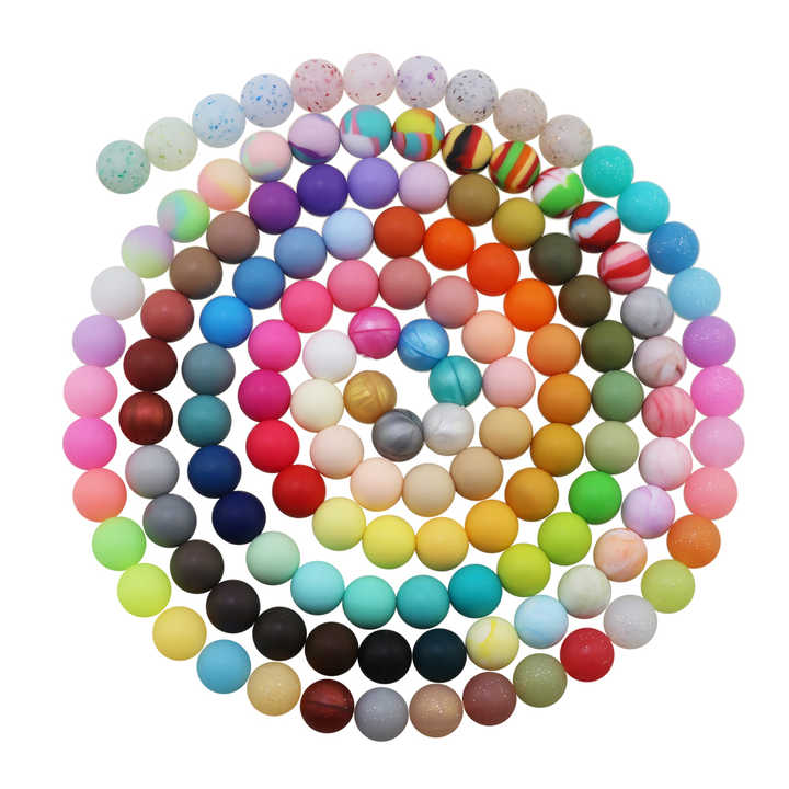 140 couleurs sans BPA de qualité alimentaire ronde perles focales à mâcher en vrac pour stylos porte-clés perles en silicone en gros 15mm 10mm 12mm 19mm