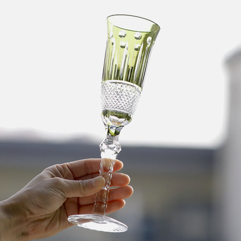 Production:Flûtes à champagne en verre de cristal intemporel coupées à la main