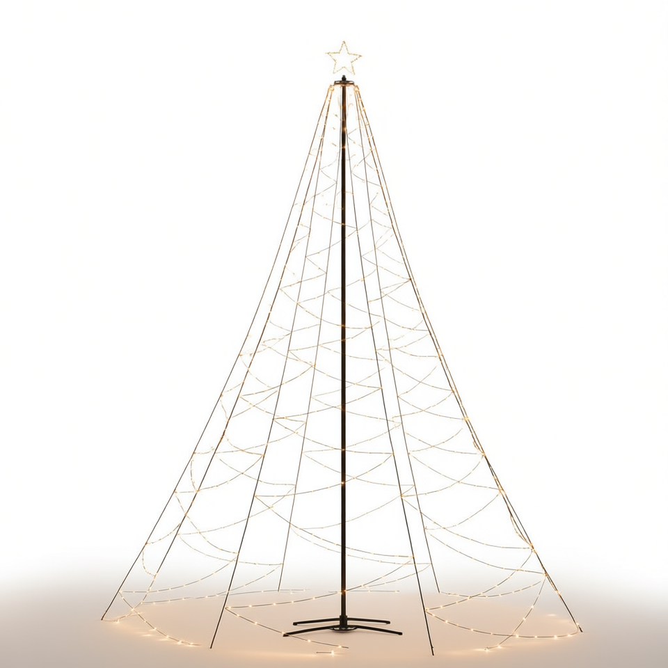 Sapin de Noël 16 pieds avec lumières LED blanc chaud, structure métallique, forme triangulaire, décoration lumineuse pour les fêtes