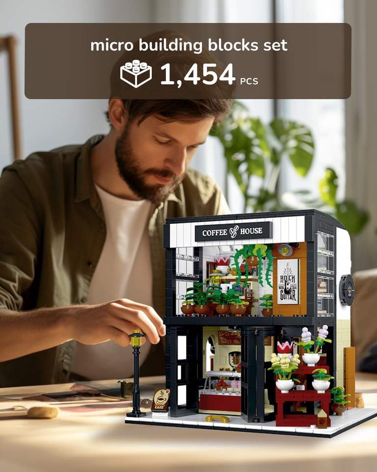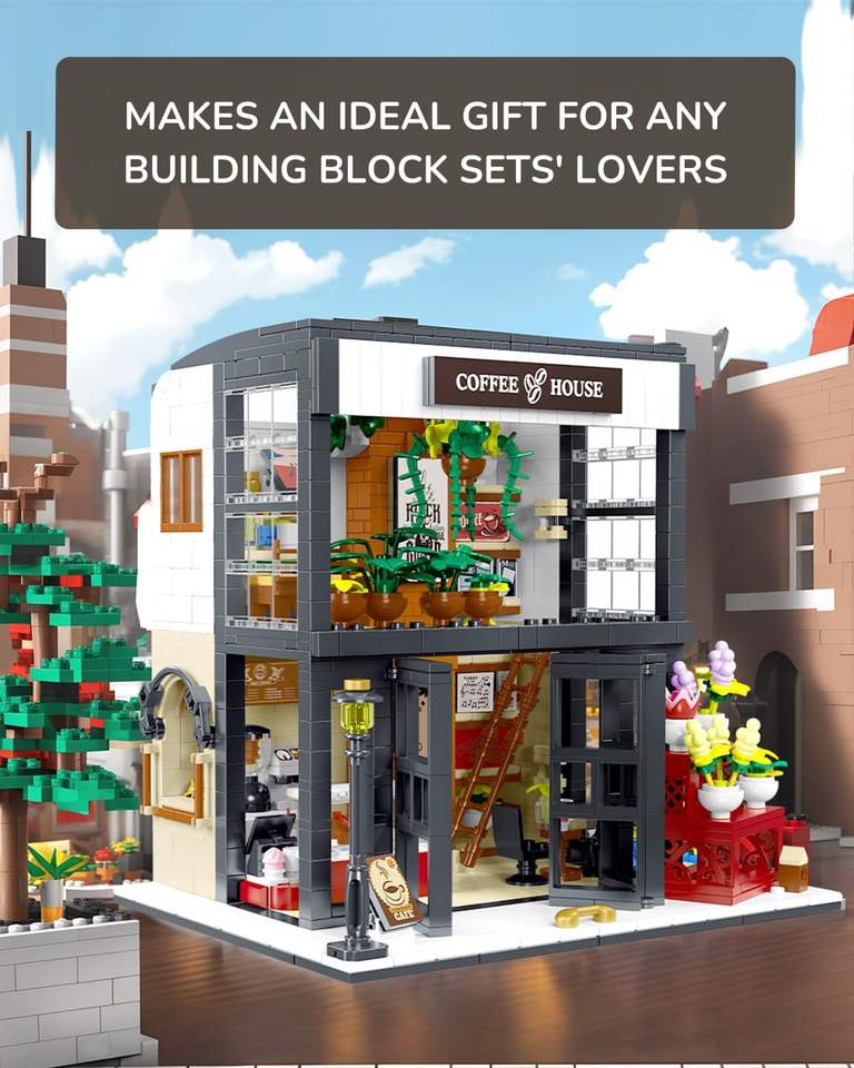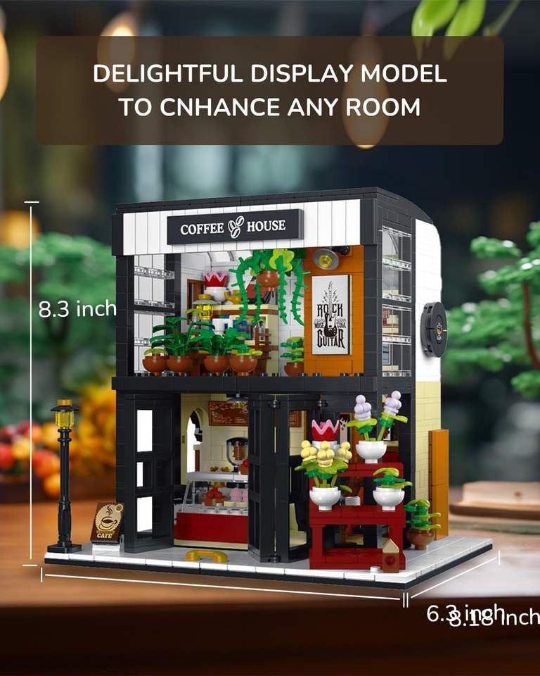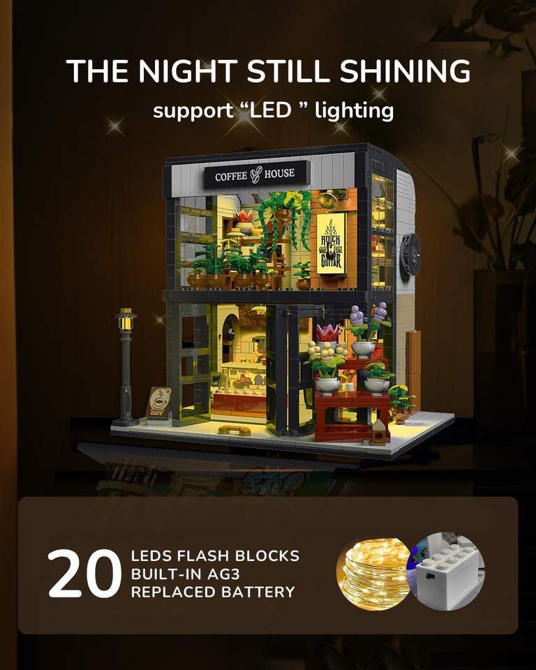 1454 PCS Floral Coffee House avec effets de lumière Blocs de construction Jouet pour enfants-Jeu créatif sur le thème de la nature et modèles personnalisables
