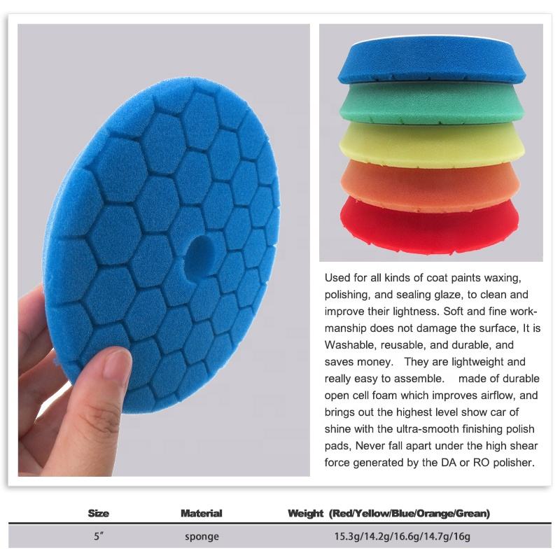 Tampons de polissage en mousse à double action de 145 mm, crochet et boucle, éponge hexagonale, tampons orbitaux DA/RO, tampons de polissage standard pour le polissage de voitures