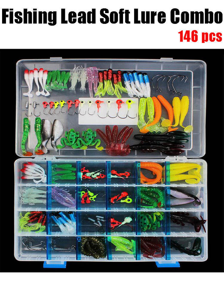 146pcs Softbait T-tail Worm Pesca in Mare Soft Pop Pesca Make Lifelike Mega Bass Fishing Lures Set Kit Box Iscas Fishing Box Set