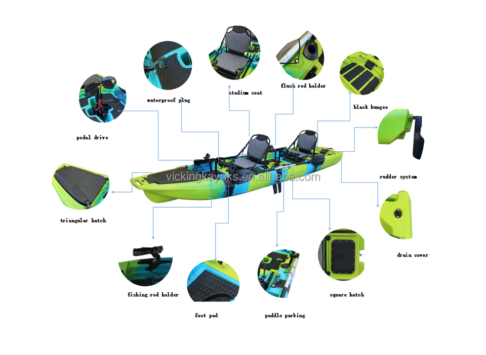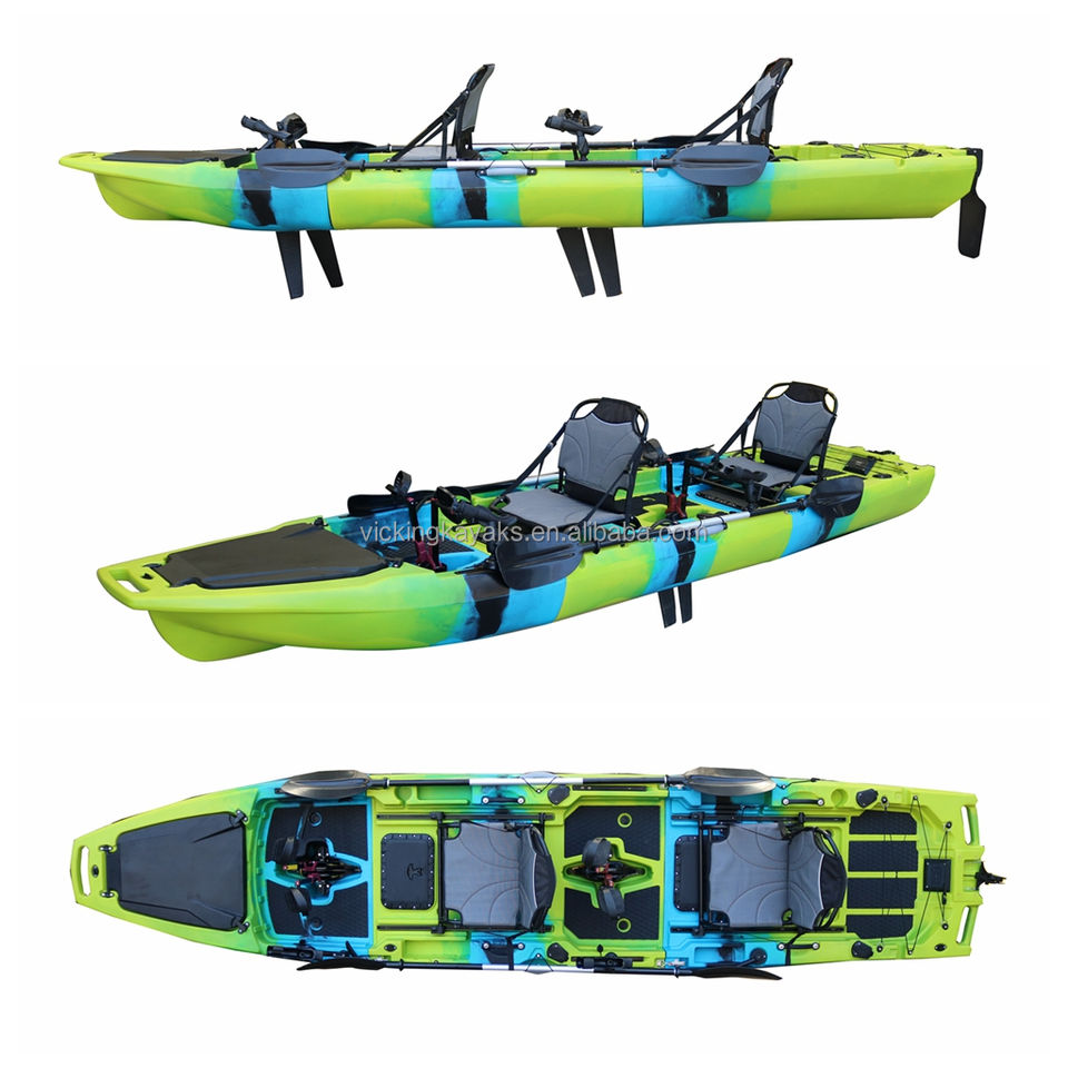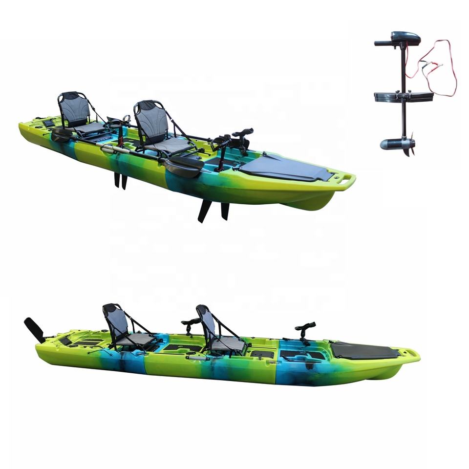 Kayak à pédales modulaire à double siège de 14 pieds pour 2 personnes Kayak de pêche assis sur le dessus Matériau PE Certificat CE Canoë
