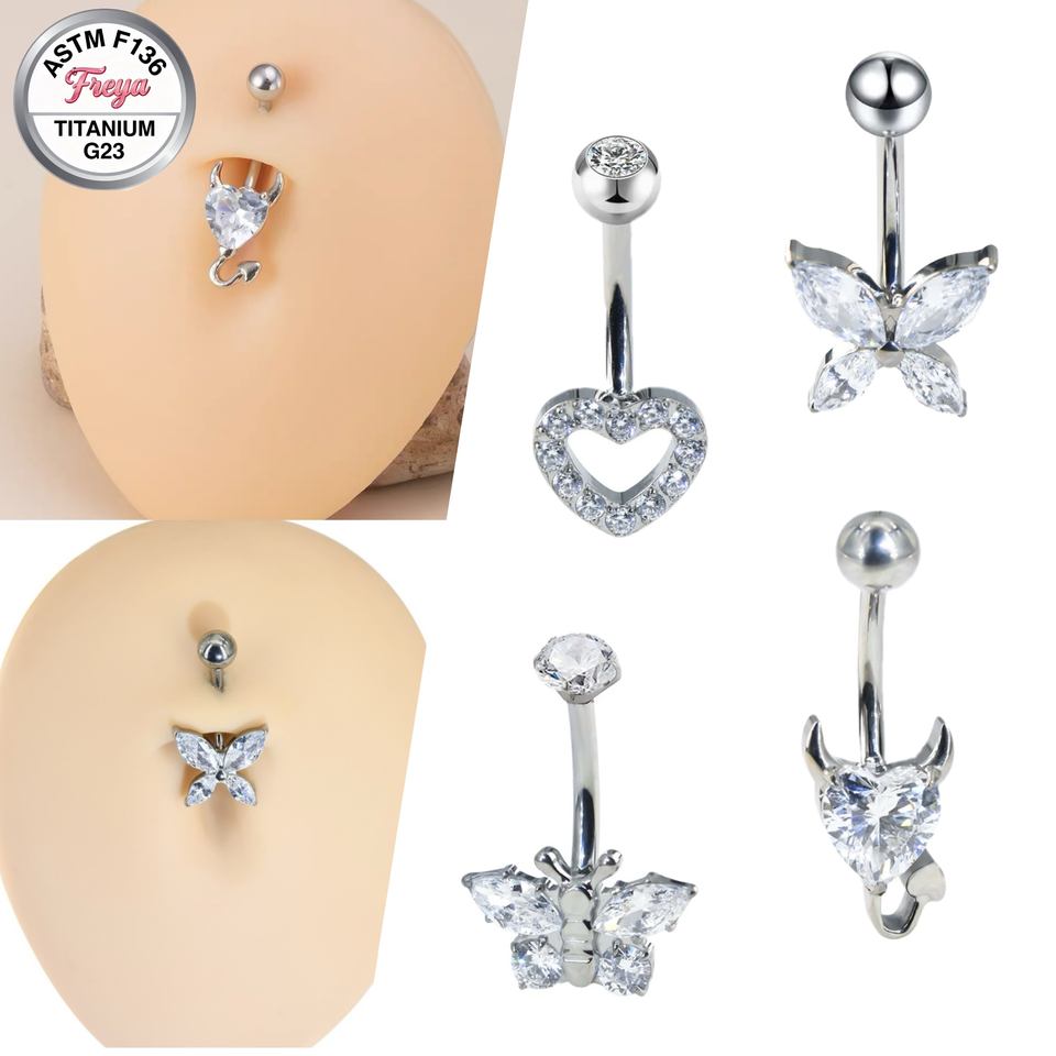 Piercing de nombril en titane ASTM F136 14G avec zircon et diamant, motifs cœur, papillon, démon - Bijoux tendance