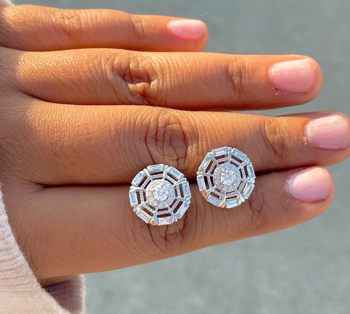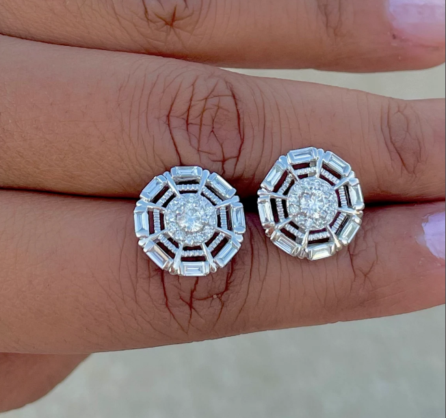 Boucles d'oreilles en or 14K 1.06 Ct avec diamant de laboratoire Boucles d'oreilles baguette rondes Boucles d'oreilles en diamant de laboratoire pour cadeau pour femme