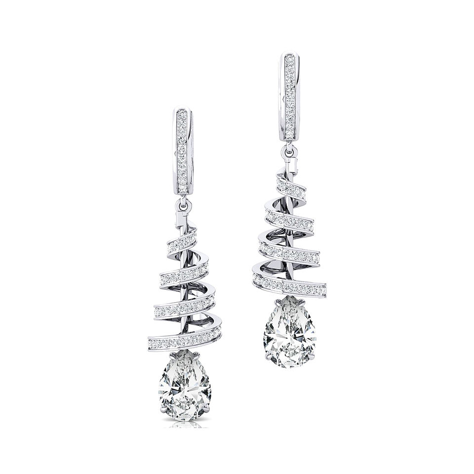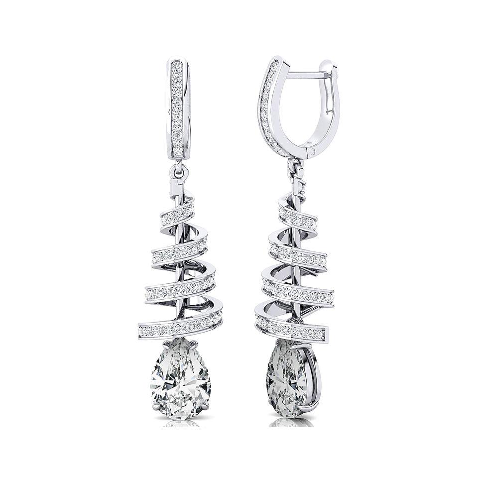 Boucles d'oreilles créoles pendantes en spirale en or 14K avec diamant de laboratoire taille poire 2 carats, serti à griffes, certifiées IGI, luxe, 160 diamants accentuants