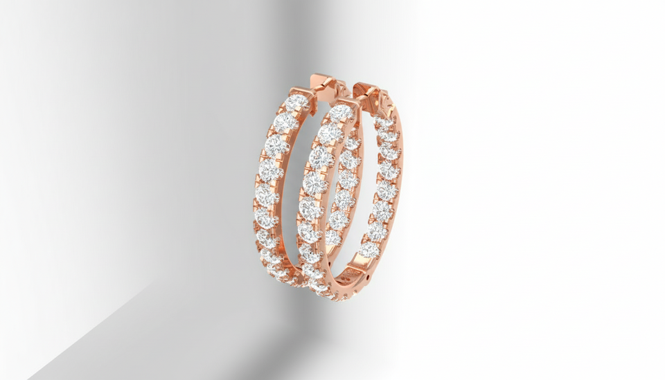 Boucles d'oreilles créoles entièrement serties de diamants naturels, 40 pierres à l'intérieur et à l'extérieur, plaqué or 14 carats rhodié | Créoles Éternité Brillantes | Vente en gros pour femmes