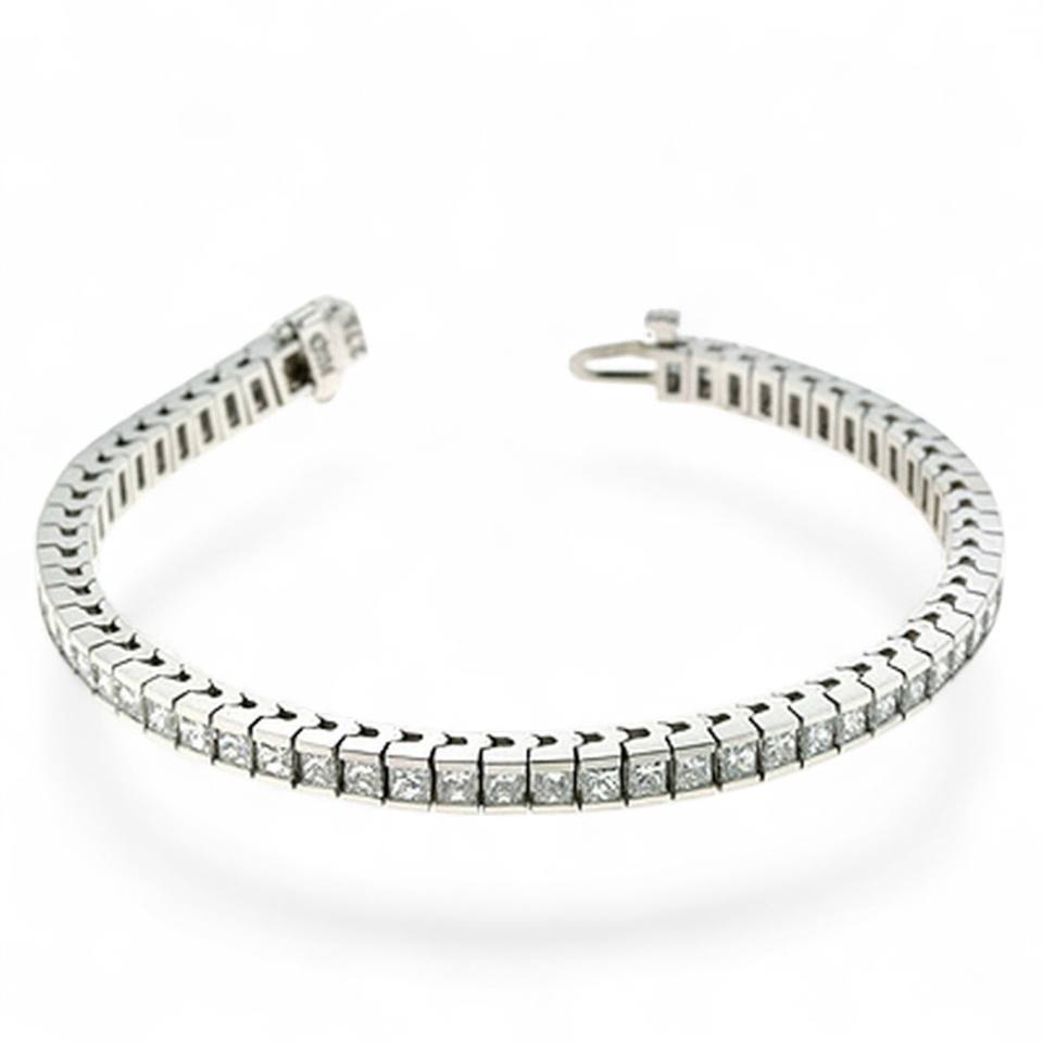 Bracelet tennis en or 14 carats serti de diamants taille princesse